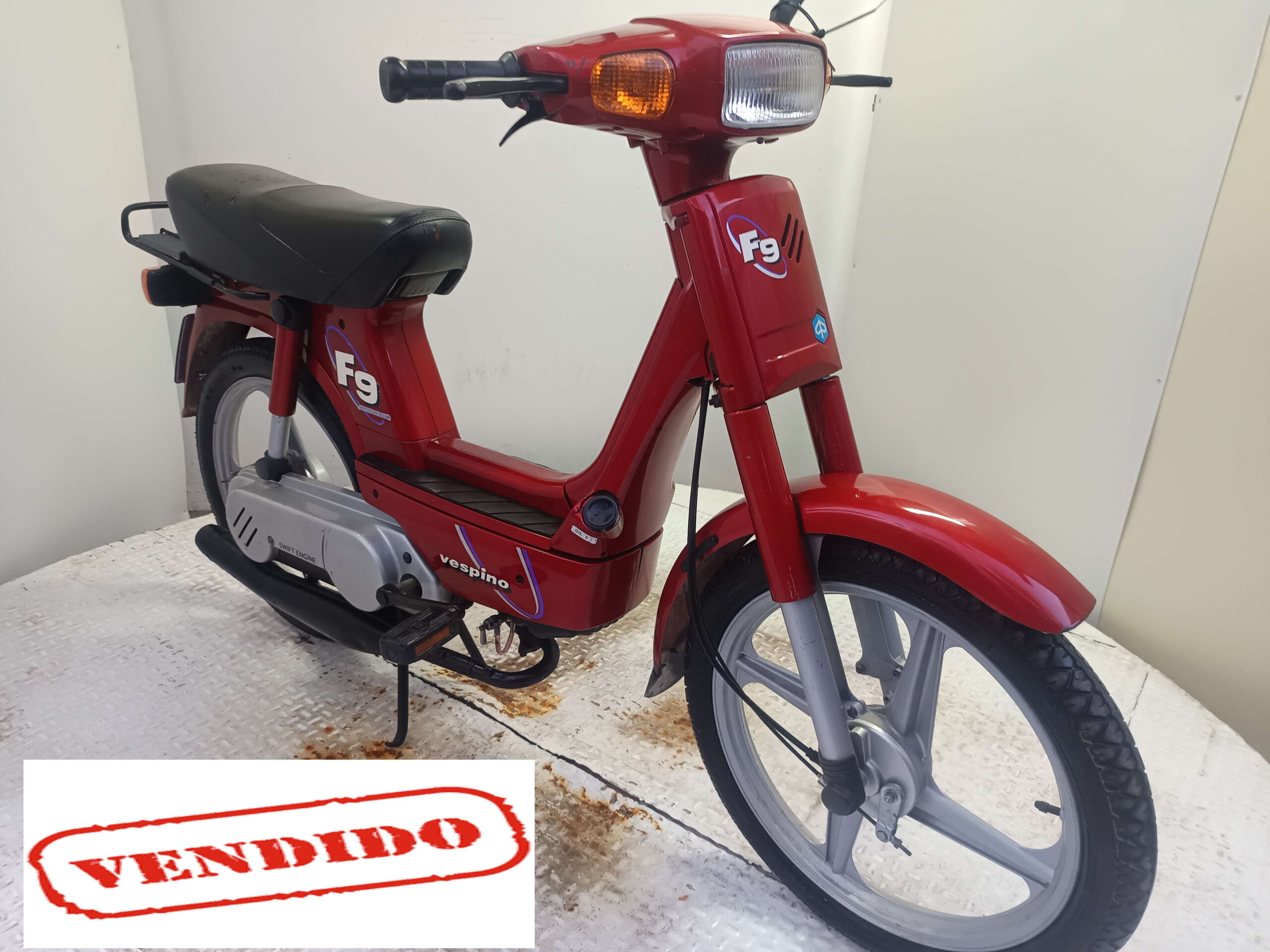 -VESPINO F-9 EN COLOR ROJO.ENTERO ORIGINAL CON DOCUMENTACION AL DIA.LE FUNCIONA TODO PERFECTAMENTE COMO EL CUENTA/KMS,CERRADURA DE BLOQUEO,ESCAPE ORIGINAL…8EN ESTE PRECIO LO ENTREGAMOS TRANSFERIDO CON CASCO DE REGALO Y ANTIRROBO…INCLUIMOS UN AÑO GARANTIA EN ESTE VEHICULO)….MOTO DISPONIBLE…